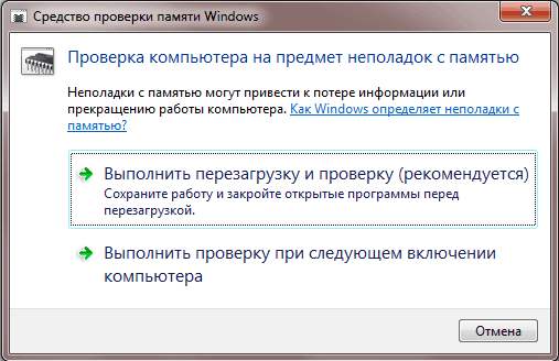 Проверка оперативной памяти средствами Windows.